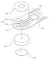 전술 및 도시한 본 발명의 실시예에서는 중심전극을 기준으로 방향전극이 방사 방향을 따라 1열로 배치된 예를 들어 설명하고 있지만, 경우에 따라서는 도 8과 같이, 중심전극(332)을 기준으로 2열 이상의 방향전극(334)이 배치되도록 구성할 수도 있다. 전술한 실시예와 마찬가지로, 중심전극(332) 및 방향전극(334)들은 우측의 마이크로 칩(10)에 1:1로 전기적으로 연결되며, 통상의 연결 단자들을 통해서 단말기의 메인 회로기판과 연결될 수가 있다.In the above-described and illustrated embodiments of the present invention, the direction electrodes are arranged in one row along the radial direction with respect to the center electrode, but in some cases, as shown in FIG. 8, the