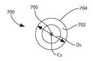 예시적인 실시예에서, 캡의 관형 부분(301) 및 테두리 부분(702) 모두는 일반적으로 원형의 황단면 프로필을 갖는다. 그러나, 본 발명은 그에 제한되지 않으며, 다른 실시예에서 상기 관형 부분(301) 및/또는 테두리 부분(702)은 필요시 원형이 아닌 횡단면 프로필을 가질 수 있다. 도10에 상세히 도시된 바와 같이, 캡(700)의 테두리 부분(702)은 중심 지점(C3) 및 직경(D3)[테두리 엣지(704)에서 측정한]을 갖는다. 하기에 서술되는 바와 같이, 테두리 부분(702)의 횡단면 프로필의 크기 및/또는 형상은 캡(700)의 디스펜서(300)에 연결될 때 디스펜서(300)가 공동(280)내로 완전히 삽입되는 것을 방지하기 위해 칫솔(200)의 개구(215)의 횡단면 프로필과 협력하도록 선택된다.In an exemplary embodiment, both the