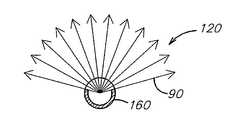 20A-20E are schematic top views illustrating examples of the distribution of sprays that may be produced by various embodiments of a guide tube comprising struts and / or openings.
