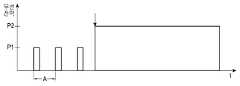 우선, 전력 송신기(100)는 제1 안테나(130)에 낮은 파워(P1, 도 4 참조)를 갖는 펄스를 미리 정해진 시간 단위(A, 도 4 참조)마다 주기적으로 공급하면서, 상기 제1 안테나(130)에 걸리는 부하(load)를 모니터링(monitoring)한다.First, the