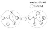 해당 허브는 자신과 싱크 방향으로 연결된 이웃 허브와 서로 싱크 트리를 비교하여 틀린 부분이 있을 경우, 최신 정보로 자신의 싱크 트리를 업데이트할 수 있다. 이런 방식에 의해, 연결된 한 도메인 내 모든 허브들은 결국 동일한 싱크 트리 정보를 공유하게 된다.The corresponding hub may update its sink tree with the latest information when there is a wrong part by comparing the sink tree with the neighboring hubs connected in the sink direction. In this way, all hubs in a connected domain eventually share the same sink tree information.