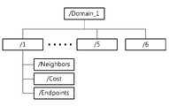 제2 싱크 트리에서 /Neighbors는 자신과 직접 연결된 허브의 리스트를, /Cost는 도메인 내에서 해당 허브와 상대방 허브를 연결하는 링크의 비용을, /Endpoints는 각 허브의 인터페이스 정보를 나타낸다.