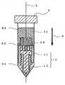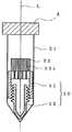어댑터 (12) 는 스토퍼 (11) 의 상면판 (1) 을 용기 (21) 의 깊이 방향의 중간 위치에 배치시키고 또한 상면판 (11) 을 용기 (21) 의 깊이 방향에서 이동 가능하게 지지하기 위해 사용된다.The