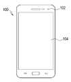 통상적인 모바일 단말의 전면 카메라 배치 예를 보인 도 1을 참조하면, 전면 카메라(102)는 모바일 단말(100)의 전면에 있는 디스플레이(104)의 우측 상부에 배치된다. 이와 달리 전면 카메라(102)는 모바일 단말(100)의 전면에서 우측 상부 이외의 다른 위치에 배치될 수도 있다.1, which is an example of a front camera arrangement of a typical mobile terminal, a