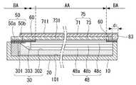 도 9에서 예시되는 바처럼, 케이스(10)는 벤딩부(10b)를 포함해서 구성돼, 백라이트 유닛(40)의 한쪽을 구속한다. 그리고, 백라이트 유닛(40)의 다른 쪽은 마운팅 부재(93)에 의해 구속돼, 백라이트 유닛(40)은 안정적으로 케이스(10)에 고정된다.As illustrated in Fig. 9, the