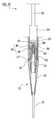 (10) 첨예한 바늘끝을 갖는 바늘체와, 선단이 상기 바늘끝보다도 끝이 무디게 형성된 가늘고 긴 형상을 이루고 기단에 장착부를 갖는 안내부와, 상기 안내부보다도 직경이 굵은 동체부와, 상기 안내부 또는 상기 동체부에 설치되고 선단측으로부터 기단측을 향하여 직경 확장하는 직경 확장부를 포함하고, 상기 바늘체와 상기 안내부와 상기 동체부는 별체로서 구성됨과 함께, 상기 장착부에는 상기 바늘체 또는 상기 동체부가 장착되고, 상기 장착부에 상기 바늘체를 장착함으로써 상기 안내부가 상기 바늘체를 따라 근접 배치되어 상기 바늘끝이 상기 안내부의 상기 선단으로부터 돌출하고, 또한, 상기 바늘체를 이탈한 상기 장착부에 대하여 상기 동체부가 장착되는 것을 특징으로 하는 의료용 확장기 세트;(10) A knitting machine comprising: a needle bar having a sharp needle tip; a guide part having a tip end formed in an elongated shape with a tip end dulled and having a mounting part at a base end; a body part having a diameter larger than that of the guide part; And a diameter enlarging portion provided on the body portion and extending diametrically from a distal end side to a proximal end side, wherein the needle body, the guide portion and the body portion are formed as separate bodies, and the attachment portion is provided with the needle body or the body Wherein the needle portion is attached to the mounting portion so that the guide portion is disposed close to the needle body so that the needle tip protrudes from the tip end of the guide portion, A medical expander set having a body part attached thereto;