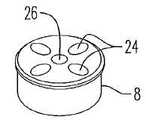 도 17에 도시된 일 실시예에서, 입 단부 삽입체(8)는 분기형 출구 통로(24) 및 축상(on-axis)의 출구 통로(26)를 포함할 수 있다.17, the
