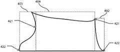 일 실시태양에서 공정 제어는 측정, 계산, 조정, 및 이들의 조합을 포함하는 다단계 공정 제어를 포함한다. 이러한 공정은 공정 인자, 치수 특성, 치수 특성들의 조합, 및 이들의 조합에 적용된다. 예를들면, 일 실시태양에서, 하나 이상의 치수 특성들 측정, 하나 이상의 치수 특성들 측정에 기초한 하나 이상의 값들 계산, 및 하나 이상의 계산 값들에 기초한 하나 이상의 공정 인자들 (예를들면, 탈락 거리 (197)) 조정을 포함한다.In one embodiment, process control includes multi-step process control including measurements, calculations, adjustments, and combinations thereof. This process applies to process parameters, dimensional properties, combinations of dimensional characteristics, and combinations thereof. For example, in one embodiment, one or more of the process parameters (e.g., dropout distance 197 (e.g., the dropout distance 197) based on one or more calculation properties, )) Adjustment.