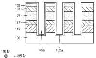 예시적인 실시예들에 있어서, 상부 전극막(133) 상에 상부 전극막(133) 상면을 부분적으로 노출시키며 상기 제1 방향으로 연장되는 제1 마스크(139)를 형성한 후, 제1 마스크(139)를 이용한 건식 식각 공정을 통해 상부 전극막(133), 가변 저항 물질막(123), 하부 전극막(113) 및 제1 도전막(112)을 관통하는 제1 트렌치(145)를 형성할 수 있다. 제1 마스크(139)는 예를 들어, 실리콘 질화물을 이용하여 형성할 수 있다.In the exemplary embodiments, after forming the