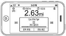 도 23a 및 23b는 여기에 기재된 하나 이상의 형태에 따라 파워송 옵션(power song option)없이 운동 정보를 디스플레이하는 예시적인 인런(in-run) 인터페이스를 나타내는 도면.
