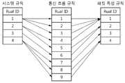 상술한 바와 같이 하나의 패킷에 대해서 3가지 규칙(시스템 규칙, 통신 흐름 규칙, 패킷 특성 규칙)이 생성되며, 중복된 규칙은 등록하지 않는다. 하나의 패킷에 대한 3가지 규칙과의 연관관계를 규정하기 위해서 도 9와 같이 각 규칙의 테이블의 필드는 링크드 리스트 형태로 관리된다. 예를 들어, 도 9에서, 시스템 규칙 Rule ID 1과 통신 흐름 규칙 Rule ID 1 및 패킷 특성 규칙 Rule ID 1은 하나의 패킷에 의해 생성된 규칙으로 볼 수 있다. 시스템 규칙 Rule ID 1과 통신 흐름 규칙 Rule ID 2 및 패킷 특성 규칙 Rule ID 1은 또 다른 하나의 패킷에 의해 생성된 규칙으로 연관성을 가진다.As described above, three rules (system rule, communication flow rule, and packet characteristic rule) are generated for one packet, and no duplicated rule is registered. In order to define the association with three rules for one packet, the fields of each rule table are managed in a linked list form as shown in FIG. For example, in FIG. 9, the system