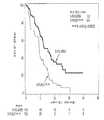 도 1은 생존에 대한 카플란-마이어 (Kaplan-Meier) 평가를 나타낸다. 평균 생존기간 (점선)은, 이리노테칸, 플루오로우라실 및 류코보린 (IFL) + 위약이 투여된 군에서의 15.6개월과 비교하여, IFL + 베바시주맙 (BV)이 투여된 군은 20.3개월이었으며, 사망 위험률 0.66 (P<0.001)에 상응한다.