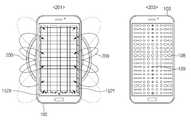 상술한 펜 시트는 자장을 감지하는 코일 형태로, 무선충전 중 무선 충전 장치(200)에서 회절되는 fringing 자장(또는 노이즈 자장)(209)를 감지할 수 있다. 상기 노이즈 자장은 201 상태에서와 같이 전자 장치(100)의 디스플레이에서 균일하지 않게 감지될 수 있다. 예컨대, 디스플레이의 일부 영역(예: 좌측 엣지, 우측 엣지)에서 강하게 감지되고 다른 영역(예: 디스플레이 중심)에서는 상대적으로 약하게 감지되거나 감지되지 않을 수 있다.The pen sheet described above can detect a fringing magnetic field (or noise magnetic field) 209 diffracted in the