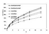 일부 실시양태에서, 상기 블렌드는 약 6.0 초과의 pH에서의 수용액에 용해되고, 실온에서 측정된 약 3.0 미만의 pH에서의 수용액에 침지되었을 때 4-40일의 기간 동안 불용성이다.In some embodiments, the blend is insoluble in an aqueous solution at a pH of greater than about 6.0 and is insoluble for a period of 4-40 days when immersed in an aqueous solution at a pH less than about 3.0 measured at room temperature.