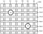 25 and 26 show a simplified sensor electrode matrix with driving electrodes E1 to E6 and receiving electrodes Rcv1 to Rcv6;