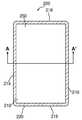 전자 장치(200)는 예컨대 앞면(210), 뒷면(212), 왼쪽면(214), 오른쪽면(216), 윗면(218) 및 아랫면(219)(도 2a 및 2b의 단면에는 도시되지 않음)에 의해 경계가 이루어지는 모양을 포함하는 임의의 적절한 모양을 가질 수 있다. 각 표면은 실질적으로 평면, 곡면 또는 이들의 조합들이 될 수 있다. 표면들은 하나 이상의 챔퍼(chamfer), 멈춤쇠(detent), 개구부, 움푹 패인 부분(dip), 연장부, 또는 표면의 매끄러움을 수정하는 기타 특징을 포함할 수 있다.The