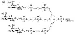GalNAc 모이어티는 화학식 II 에서 물결선에 의해 표시되는 바와 같이 알파 또는 베타 입체배치로 존재할 수 있다. 바람직한 구현예에서 GalNAc 모이어티는 베타 입체배치로 존재한다.The GalNAc moiety may be in alpha or beta configuration as indicated by the wavy line in formula (II). In a preferred embodiment, the GalNAc moiety is in beta stereoconjugation.