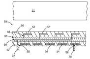 이제 도 3 내지 도 5를 참조하면, 베이스 히터층 및 튜닝층(위에 도 2에서 일반적으로 제시된 바와 같음)을 모두 구비한 히터의 한 예시적 형태가 도시되며, 참조번호(80)에 의해 일반적으로 표시된다. 상기 히터(80)는 베이스 플레이스(82)(냉각 플레이트(cooling plate)로서도 지칭됨)를 포함하는데, 이것은 일 형태에서는 약 16mm 두께의 알루미늄 플레이트이다. 일 형태에서는, 베이스 히터(84)는 도시된 바와 같이 탄성 결합층(elastomeric bond layer)(86)을 사용하여, 상기 베이스 플레이트(82)에 고정된다. 상기 탄성 결합은, 그 전체가 참조로서 본 명세서에 포함된, 미국 특허 제6,073,577호에 개시된 것일 수 있다. 본 개시의 일 형태에 따르면, 기판(88)은, 상기 베이스 히터(84)의 상단(top)에 배치되며 두께 약 1mm의 알루미늄 물질이다. 상기 기판(88)은 상기 베이스 히터(84)로부터 파워의 필요량을 분산(dissipate)시키기 위한 열전도율을 갖도록 설계된다. 상기 베이스 히터(84)는 열전도율의 필요량 없이 상대적으로 높은 파워를 갖기 때문에, 이 베이스 히터(84)는 (상기 저항성(resistive) 회로 트레이스(circuit trace)로부터) 인접한 구성요소(component)들 상에 “증거(witness)” 마크(mark)들을 남길 것이며, 결과적으로 전체 히터 시스템의 성능을 감소시킨다.Referring now to FIGS. 3-5, there is shown an exemplary embodiment of a heater with both a base heater layer and a tuning layer (as generally shown in FIG. 2 above), generally designated by the