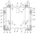 [0012] 바람직하게는, 제1 낙하 방지 부재가 위(上), 제2 낙하 방지 부재가 아래(下)가 되도록, 제1 낙하 방지 부재와 제2 낙하 방지 부재는 공통의 지지 기둥(支柱)에 부착되며, 또한, 제2 낙하 방지 부재는 연직축 둘레로 회동(回動) 가능하게 상기 지지 기둥에 부착되어 있다. 연직축 둘레로 제2 낙하 방지 부재를 회동시키면, 예컨대 수평으로 진출 및 후퇴시키는 경우에 비해, 작은 스페이스의 기구에서 간단하게 진퇴시킬 수 있다.Preferably, the first fall-preventive member and the second fall-preventive member are provided on a common support column so that the first fall-prevention member is on the upper side and the second fall-prevention member is on the lower side, And the second fall preventing member is attached to the support column so as to be rotatable around the vertical axis. When the second fall preventing member is rotated around the vertical axis, for example, it can be easily moved back and forth by a mechanism having a small space, compared with the case of horizontally advancing and retracting.