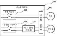 시스템 차단부(400)는 사용자 또는 차단 제어부(500)의 신호에 따라 다수의 전등 부하 각각의 온/오프를 제어하는 다수의 전등 차단부(410)와, 사용자 또는 차단 제어부의 신호에 따라 다수의 콘센트에 접속된 기타 부하의 온/오프를 제어하는 다수의 콘센트 차단부(420)와, 다수의 콘센트에 접속된 기타 부하의 대기 전력을 제어하는 다수의 대기 전력 제어부(430)와, 전등 차단부(410)와 콘센트 차단부(420)에 접속된 시스템 단자부(440)를 포함한다.The