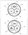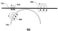 예를 들면, 이러한 비-원형 장 분포들은 비교적 더 높은 전계 강도에 의해 특성화된 하나 이상의 축방향 로브들 및/또는 비교적 저-전계 강도, 영-전계 강도 또는 실질적으로 영-전계 강도에 의해 특성화된 하나 이상의 널들 또는 널 영역들을 갖고 일방적이거나 또는 다각적일 수 있다. 뿐만 아니라, 장 분포는 그 외, 예시적인 실시예에 따라, 와이어 주위에서의 하나 이상의 각도 영역들이 방위각 배향의 하나 이상의 다른 각도 영역들보다 높은 전기 또는 자기 장 강도(또는 그것의 조합)를 갖도록 와이어 주위에서 방위각 배향의 함수로서 달라질 수 있다. 유도 파 고차 모드들 또는 비대칭 모드들의 상대적 배향들 또는 위치들은 유도 파가 와이어를 따라 이동함에 따라 달라질 수 있다는 것이 이해될 것이다.For example, these non-circular field distributions can be characterized by one or more axial lobes characterized by a relatively higher field strength and / or a combination of one or more axial lobes characterized by relatively low-field strength, zero-field strength or substantially zero- And may be one-sided or multi-layered with one or more nulls or null regions. In addition, the field distribution may also be determined such that, according to an exemplary embodiment, one or more angular regions around the wire have a higher electrical or magnetic field strength (or a combination thereof) than one or more other angular regions of azimuthal orientation. Can be varied as a function of azimuthal orientation in the surroundings. It will be appreciated that the relative orientations or locations of the guided wave higher order modes or asymmetric modes may vary as the guided wave moves along the wire.
