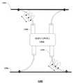 도 18g 및 도 18h는 도 18a, 도 18b, 또는 도 18c의 송신 매체와 함께 사용될 수 있는 커넥터 구성들의 예시적인, 비-제한적 실시예들을 예시한 블록도들.