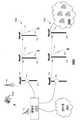 Figs. 19A and 19B are block diagrams illustrating exemplary, non-limiting embodiments of the transmission medium of Fig. 18A used to induce inductive electromagnetic waves on power lines supported by poles; Fig.