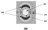 도 3은 여기에서 설명된 다양한 양상들에 따른 전자기장 분포의 예시적인, 비-제한적 실시예를 예시한 그래픽 다이어그램.