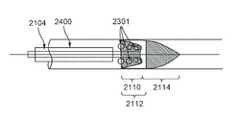 도 24는 도 21의 필터 조립체에 의해 포집된 폐색 물질을 제거하기 위해 혈관 내로 도입된 의료기구를 도시하는 혈관의 단면도이다.