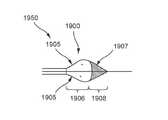 테더형 필터(1900)는 자유로운 상태 또는 구속되지 않은 상태로 도 19에 도시되어 있다. 도 20에서, 테더형 필터(1900)는 지지부재(1905)가 메쉬(1907)의 내부에 위치되는 제 2상태로 변화된다. 메쉬(1907) 내에서 지지부재(1905)는 메쉬(1907) 내부의 일부에 대한 접근을 차단할 수 있다. 그러한 구성은, 메쉬(1907)의 후방단으로부터 일정 거리만큼 떨어져 의료기구를 위치시키는 것이 바람직한 경우, 예를 들어 광 또는 센서 등의 특정 의료기구와 함께 사용하는 것이 바람직하다.The