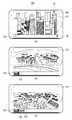 도 1은 본 개시의 일 실시예에 따른 전자 장치에서 이미지를 표시하고, 표시된 이미지를 선택하여 무인 촬영 장치의 이동 경로를 설정하는 과정을 설명하기 위한 도면들이다.1 is a diagram illustrating a process of displaying an image in an electronic device according to an embodiment of the present disclosure and selecting a displayed image to set a movement path of the unmanned aerial photographing apparatus.
