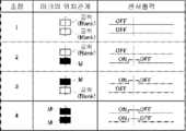 코드(3)와 2개의 UV센서(20, 21)의 온 신호의 출력과의 관계를 도 7에 나타낸다. UV센서(20, 21)의 온 신호의 출력의 상대 변화의 비교 결과에 기초하여, 마크(M)의 소정의 조합을 특정할 수 있다. 결과적으로, 상하 2열의 마크(M)의 조합으로서 4종, 이것을 4열 인쇄하면, 4종의 4승(乘)으로 256종의 코드가 구성 가능해진다. 트럼프 카드의 52종의 카드를 256종의 코드의 어느 것인가에 각각 할당하고, 이것을 대조표로서 메모리 혹은 프로그램으로 기억해두며, 카드 판독부(8)는, 각 코드(3)를 특정함으로써, 미리 정한 대조표(도시하지 않음)로부터 카드(1)의 수(랭크)와 종류(슈트)가 특정되는 구성으로 하고 있다. 또, 256종의 코드는, 52종의 카드에 자유로운 조합으로 대응지어 대조표에 의해 기억할 수 있으므로, 조합을 복잡하게 할 수 있고, 시간이나 장소에 의해 256종의 코드와 52종의 카드의 조합을 바꿀 수 있다. 코드는, 자외광을 받음으로써 가시화되는 도료로 인쇄되어, 카드 종류 표기나 인덱스(102)와 겹치지 않는 위치에 인쇄되어 있는 것이 바람직하다.Fig. 7 shows the relationship between the