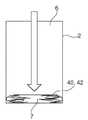 도 7a 및 도 7b는 본 발명의 예시적인 제5 실시예에 따른 음료 생산을 위한 시스템(1) 및 방법을 도시한다. 제5 실시예는 본질적으로 도 6a 및 도 6b에 도시된 제4 실시예와 유사하고, 여기에서 스크린 요소(40)는 벨로우즈(41) 형태가 아니라 연성 백 요소(42)의 형태로 카트릿지(2) 내측에 배열된다. 벨로우즈(41)와 달리, 백 요소(42)는 일반적으로 압궤되지 않고, 카트릿지 방출 장치(34)에 의해서 단순히 압축된다. 백 요소(42)는 보다 특히 액체-불침투성 막 재료로 제조된다. 벨로우즈(41)에서와 같이, 백 요소(42)는 카트릿지(2)의 출력 측부(4) 상에 부착되는 반면, 음료 물질(7)은 백 요소(42) 내측에 배열된다.Figures 7A and 7B show a system 1 and method for beverage production according to an exemplary fifth embodiment of the present invention. The fifth embodiment is essentially similar to the fourth embodiment shown in Figures 6a and 6b wherein the