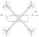 즉, 두개의 프레임이 X자 형태로 교차하며 구비되어, 본체(400)와 결합하여, 본체의 전방양측 및 후방양측에 각각 로터(520)가 구비될 수 있다.That is, the two frames are provided to cross each other in the X-shape, coupled with the