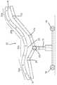 이러한 움직임은 예를 들어 제 1 구획(20a) 및/또는 제 2 구획(20b)의 일부가 길이 방향 성분을 갖는 회전축을 중심으로 회전할 수 있게 하는 제 2 횡방향 피벗 지점(22)에 위치된 추가적인 힌지를 사용하여 달성될 수 있다.This movement is for example located at the second