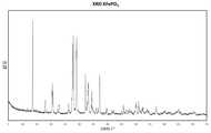 도 5 는 제조예 5 에 따라 본 발명에 따라 제조된 결정 무수 KFe0.90Zn0.10(PO4) 의 x-선 회절도를 보여준다.