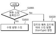 인트라 예측에서의 스캔 방향은 인트라 예측 모드에 따라 다르게 선택될 수 있으며, 이는 휘도 신호 및 색차 신호에 모두 적용될 수 있다. 아래 표 2는 인트라 예측 모드에 따른 스캔 방향을 결정하는 방법의 일예를 나타낸다.The scan direction in intra prediction may be differently selected according to the intra prediction mode, which can be applied to both luminance signals and color difference signals. Table 2 below shows an example of a method for determining the scan direction according to the intra prediction mode.