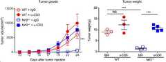 상기 실시예 2에서 확인한 바와 같이, Nrf2 결핍 마우스는 다양한 암 종에 대한 강력한 항암반응을 나타냄을 확인하였다. 이와 같은 현상이 T 세포 매개 항암 반응인지 알아보기 위하여 Nrf2 결핍 마우스와 야생형 마우스에 T세포를 결핍시켜 암 증식을 확인하고 그 결과를 도 8에 나타내었다.As confirmed in Example 2, it was confirmed that Nrf2 deficient mice exhibit a strong anticancer response to various cancer species. In order to determine whether this phenomenon is a T cell mediated anti-cancer response, Nrf2 deficient mice and wild type mice were deficient in T cells to confirm cancer proliferation and the results are shown in FIG. 8.