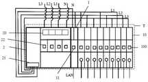 일종의 비교적 우수한 실시 예로 누전 보호장치(2)가 포함되어야 하며 누전 보호장치(2)는 표준궤도(T) 위에 설치되어 있어야 하고 누전 보호장치(2)에는 전원 인터페이스(20)와 인출선 인터페이스(21) 및 스위치(22)가 배치되어 있어야 한다.As a kind of relatively good embodiment, the earth