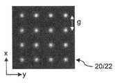 이 적용되며, 여기서 Δj: 측방향 조정 위치 j에서의 측방향 오프셋인 실시예가 유리하다. 측방향 오프셋(예를 들어 마이크로렌즈 어레이에서 서로 대응하는 위치에 있는 2 개의 마이크로렌즈의 중심축 사이에서 서로에 대해 비교하여 측정됨)에 의해서, 짝수의 초점이 설정되는 방식으로 마이크로렌즈 어레이의 거리를 동시에 적절하게 설정함으로써 간섭 조건을 조작하는 것이 가능하다. 특히, 0차 회절이 소거될 수 있다. 더욱이, 특정 조건하에서, 초점의 위치는 측방향 오프셋을 통해 측방향으로 오프셋될 수 있다.It is applied, and wherein Δj: an example of the lateral offset of the lateral adjustment position j is advantageous embodiment. The distance of the microlens array in such a way that an even number of focal points is established by a lateral offset (e.g., measured relative to each other between the central axes of two microlenses at corresponding positions in the microlens array). It is possible to manipulate the interference condition by appropriately setting at the same time. In particular, the zero-order diffraction can be canceled. Moreover, under certain conditions, the position of the focal point may be laterally offset via a lateral offset.
