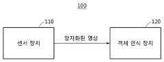 일 실시예에서, 센서 장치(110)는 내부에 포함된 처리 유닛, 예를 들어 영상 프로세서 또는 마이크로 콘트롤러 유닛(Micro Controller Unit) 등을 이용하여 자체적으로 영상을 양자화할 수 있다. 영상 프로세서는 학습된 양자화 필터를 이용하여 영상을 양자화하는 것에 의해 양자화된 영상을 생성할 수 있다. 양자화된 영상은 객체 인식 장치(120)로 전달될 수 있다. 이와 같이, 객체 인식 장치(120)가 영상을 양자화하는 처리를 수행하는 것이 아니라 센서 장치(110) 단에서 획득된 영상의 양자화 처리가 수행된다. 센서 장치(110) 단에서 양자화 처리가 수행되어, 센서 장치(110)로부터 양자화된 영상이 전송되므로 데이터 전송량 뿐만 아니라 데이터 전송을 위해 요구되는 대역폭을 줄일 수 있다. 본 명세서에서 영상 프로세서는 센서 장치(110) 내에서 영상을 처리하는 기능을 수행할 수 있는 프로세서를 가리키는 것으로서, 단지 영상을 처리하는 기능만을 수행하는 프로세서인 것으로 한정되어 해석되어서는 안된다. 실시예에 따라, 영상 프로세서는 양자화 처리의 영상 처리 이외에 다른 기능(예, 센서 장치(110)의 제어 등)을 수행할 수도 있다.In an embodiment, the