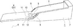 Fig. 11 is an enlarged perspective view of an essential part of the card reader at the tip of the card shooter device in a state in which the card reader is exposed.