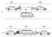 상기 거리 값은 획득된 센싱 정보에 기초하여 산출될 수 있다. 예를 들어, 제1 차량의 적어도 하나의 카메라에 의해 생성되는 스트레오 이미지를 이용하여 거리를 측정하거나, 메모리에 저장된 미리 학습된 CNN 기반의 거리 추정 모듈을 통해 거리를 예측할 수 있다. 또한, 제1 차량은 라이다, 또는 레이더를 통해 거리 값을 직접적으로 측정할 수도 있다.The distance value may be calculated based on acquired sensing information. For example, the distance may be measured using a stereo image generated by at least one camera of the first vehicle, or the distance may be estimated through a previously trained CNN-based distance estimation module stored in a memory. Also, the first vehicle may directly measure the distance value through lidar or radar.