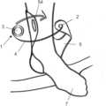 설명한 유형의 체결기 장치는 환자의 심하게 출혈하는 상처를 잡아 매기 위한 지혈 잡아 매기 시스템에도 사용될 수 있다.A fastener device of the type described may also be used in a hemostatic ligature system for ligating a patient's heavily bleeding wound.