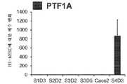 도 3a 내지 도 3q는 확실한 장의 중장 내배엽 유도를 구성하는 추가의 전사 인자 (TF)의 전사체 및 단백질 수준의 S3D5에 의한 유도를 보여주며; 적절한 장의 중장 내배엽이 달성되었다. CDX2 및 FOXA2 동시발현에 더하여, S3D5 세포는 또한 SOX9, PDX1, KLF5, HOXC5 (호메오박스 C5)의 동시발현을 나타내었지만, SOX2 (SRY-박스 2), ALB (알부민), PTF1A (췌장 특이적 전사 인자, 1a), 및 LGR5 (류신 풍부 반복 함유 G 단백질 결합된 수용체 5)의 동시발현은 나타내지 않았다. 모든 TF의 단백질 존재는 별개의 단일 채널 이미지로 도시되어 있다. 도 3a (하단)는 S3D5에서 CDX2 및 SOX9 둘 모두에 대해 98.7±0.25%의 세포가 공존하였음을 보여준다. SOX9 유전자 발현의 강한 유도는 Caco-2 세포에서 관찰된 수준과 비견되었으며 (도 3b), 면역형광 (IF)-분석에 의해 평가된 바와 같이 단백질 존재가 관찰되었다 (도 3c). 69.4±14.2%의 세포는 CDX2 및 PDX1 둘 모두에 대해 동시-양성이었다 (도 3d - 하단). 췌장-편향된 S4D3 세포와 대비할 때 (예를 들어, 미국 특허 출원 공개 제2014/0242693호 참조), PDX1 유전자 발현은 낮은 수준으로 유도되었으며 (도 3e), IF-분석에서 낮은 내지 부재하는 단백질 수준이 반영되었다 (도 3f). 전방 내배엽 TF SOX2는 1.45±0.15의 S3D5 세포가 SOX2 및 CDX2 공존을 나타낸 바와 같이 S3D5 세포에서 관찰되지 않았으며 (도 3g ― 하단; 도 3i), 유전자 발현은 hESC 및 Caco-2 세포에서 관찰된 수준 미만이었다 (도 3h). 장 중장/후장 내배엽의 적절한 발생에 필수적인, KLF5의 유전자 발현이 S3D5에서 상향조절되었다 (도 3j). S3D5에서 CDX2-양성 세포 내의 KLF5의 단백질 공존이 관찰되었다 (도 3k). ALB 유전자 발현 (도 3l), 및 단백질 존재 (도 3m)는 S3D5 세포에서 관찰되지 않았다. 췌장 계통 할당 TF인 PTF1A의 유전자 발현은 췌장-편향된 S4D3 세포와 달리 S3D5 세포에서 유도되지 않았다 (도 3n). 배아 중장 내배엽에 존재하는 호메오박스 유전자, HOXC5는 S3D5 세포에서 유도되었다 (도 3o). 도 3p는 마우스에서 임신 중기에 시작하는 배아 장 내배엽의 마커인 LGR5가 S3D5 세포에서 유도되지 않았음을 보여준다. 도 3q는 장 후장 내배엽의 마커인 HOXA13이 S3D5 세포에서 유도되지 않았음을 보여준다 (도 3p). 유전자 발현은 qPCR로 평가하였다.