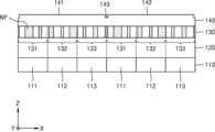 나노구조물(NP)은 단면의 폭 또는 길이가 서브 파장의 치수를 가질 수도 있다. 여기서 서브 파장은 분기 대상인 광의 파장 대역보다 작은 파장을 의미한다. 나노구조물(NP)은, 예를 들어, 제1 파장 내지 제9 파장 중 가장 짧은 파장보다 작은 치수를 가질 수 있다. 예를 들어, 나노구조물(NP)의 단면의 폭 또는 길이는 400 nm, 300 nm, 또는 200 nm 보다 작은 치수를 가질 수 있다. 한편 나노구조물(NP)의 높이는 500 nm 내지 1500 nm일 수 있고, 단면의 폭 또는 길이보다 높이가 클 수 있다. 도시하지는 않았지만, 나노구조물(NP)은 제3 방향(Z 방향)으로 적층된 2개 이상의 포스트가 결합된 것일 수도 있다. 또한, 색분리 렌즈 어레이(130)의 제3 방향(Z 방향)을 따른 두께는 나노구조물(NP)의 높이와 유사할 수 있으며, 500 nm 내지 1500 nm일 수 있다.The width or length of the cross section of the nanostructure NP may have a sub-wavelength dimension. Here, the sub-wavelength means a wavelength smaller than the wavelength band of light to be branched. The nanostructure NP may have, for example, a dimension smaller than the shortest wavelength among the first to ninth wavelengths. For example, the width or length of the cross section of the nanostructure NP may have a dimension smaller than 400 nm, 300 nm, or 200 nm. Meanwhile, the height of the nanostructure (NP) may be 500 nm to 1500 nm, and the height may be greater than the width or length of the cross section. Although not shown, the nanostructure NP may be a combination of two or more posts stacked in a third direction (Z direction). Also, the thickness of the color