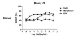 도 1a 내지 도 1d 에 도시된 바와 같이, MOR208은 라지 및 라모스 세포주에 대하여 현저한in vitro ADCC 활성을 나타내었다. hIgG 공동 처리 대조군과 비교하여, MOR208 및 리툭시맵 모두 곡선이 좌측 이동되고 및 최대 용해가 증가된바, 최고 수준의 ADCC를 매개하였다. MOR208 및 리툭시맵이 CD19에 비해 CD20에 실질적으로 높은 수준일 뿐만 아니라 비교가능한 최대 살생 효능을 나타내는 것을 고려하면, 저용량에서 더 우수한 ADCC 활성을 나타내는 라모스 세포주와, 라지 세포주를 포함하는 다양한 악성 B 세포에 대하여, MOR208는 리툭시맵과 비교하여 전반적으로 낮은 EC50을 갖는 것이 증명되었다. 이는 MOR208이 리툭시맵이 효과가 좋지 않은 조건에서 흥미로운 대체 치료제일 수 있음을 교시한다.As shown in FIGS. 1A to 1D , MOR208 exhibited significantin vitro ADCC activity against Raji and Ramos cell lines. Compared to the hIgG co-treatment control, both MOR208 and rituximab mediated the highest level of ADCC with a leftward shift in the curve and increased maximal lysis. Considering that MOR208 and rituximab show substantially higher levels on CD20 compared to CD19 as well as comparable maximal killing efficacy, various malignant B cells, including the Ramos cell line and the Raji cell line, show better ADCC activity at lower doses. , MOR208 was demonstrated to have an overall lower EC50 compared to rituximab. This teaches that MOR208 may be an interesting alternative treatment for conditions where rituximab is not effective.