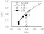 도 7는 일 실시예에 의한 발광 표시 장치의 색좌표상 특성을 도시한 도면이다.