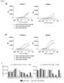 Figure 4: Induction of T-cell mediated cytotoxicity and T-cell proliferation in vitro by CD3xCD30 bispecific antibody in several ALCL and HL cell lines. (AC) CD3xCD30 bispecific antibody tested in in vitro cytotoxicity assay using different ALCL and HL cell lines as target cells and purified T cells (A, B) or ADCC effector cell type IV cells (C) as effector cells. did. The CD3xCD30 bispecific antibody contained the huCD3-FEAL Fab arm or the huCD3-H101G-FEAL variant, which has lower affinity for CD3, and the CD30-specific MDX060-FEAR Fab arm. IgG1-huCD3 and IgG1-b12 (A, B) or bsG1-b12-FEALxCD30-MDX060-FEAR and IgG1-CD30-MDX060-FEAR (C) were included as controls. Data presented are percent viable cells; Data for each graph were obtained from one representative experiment. (D) The number of CFSE-positive cells was assessed as a measure of absolute T-cell counts in cytotoxicity assays using HDLM-2 cells (left panel) or NCEB-1 cells (right panel) as target cells.