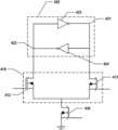 도 4는 본 개시의 몇몇 측면에 따라, 페이지 버퍼의 예시적인 레지스터(register)의 회로도를 보여준다.